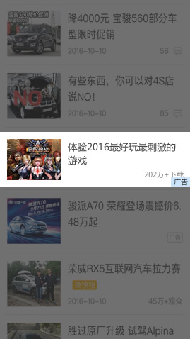 横幅广告也称Banner广告,将精彩的广告创意以图片的形式展现在手机页面底部,广告尺寸与网页高度融合,创意展现效果好,大大提高用户关注度。